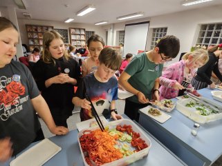 Ocenit pracovníky školních jídelen - to bylo cílem Dne kuchařek a kuchařů. Máme velké štěstí, že naše školní jídelna nejen respektuje spotřební koš, který je kontrolován Českou školní inspekcí a Krajskou hygienickou stanicí, ale dokonce připravuje jídla velice chutná, zdravá a občas nevšední. Taky každý rok vaří na přání. A my jim moc děkujeme za důležitou, ne úplně samozřejmou a někdy nevděčnou práci.