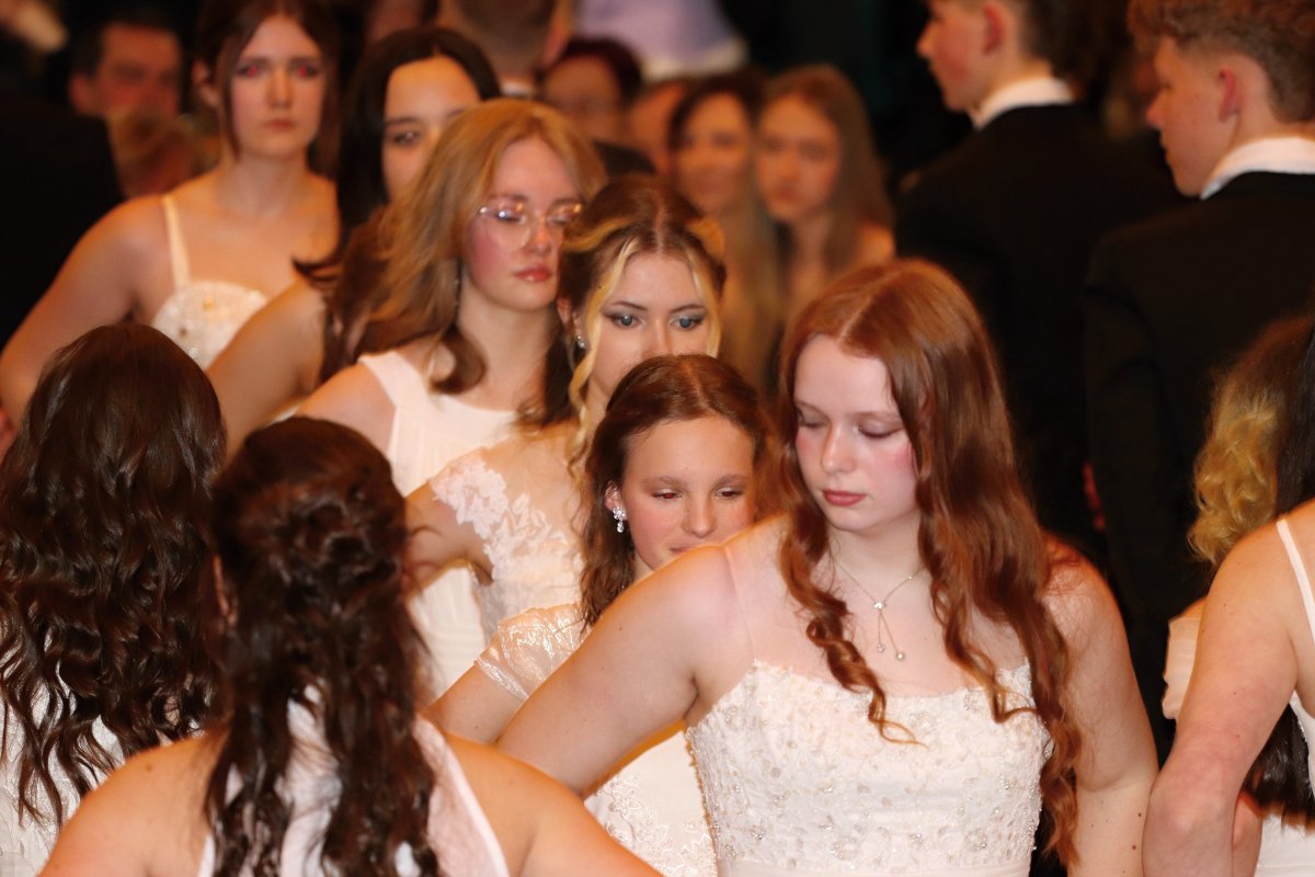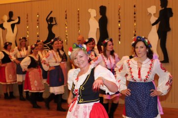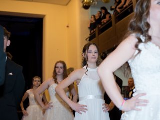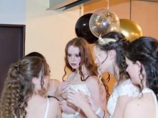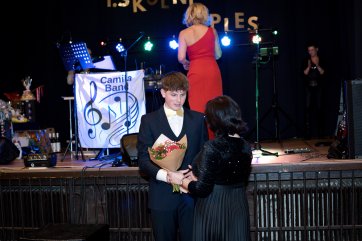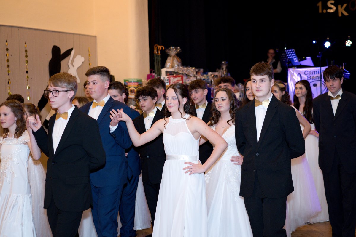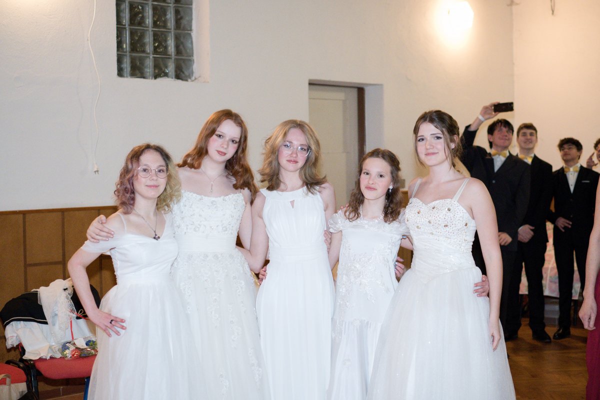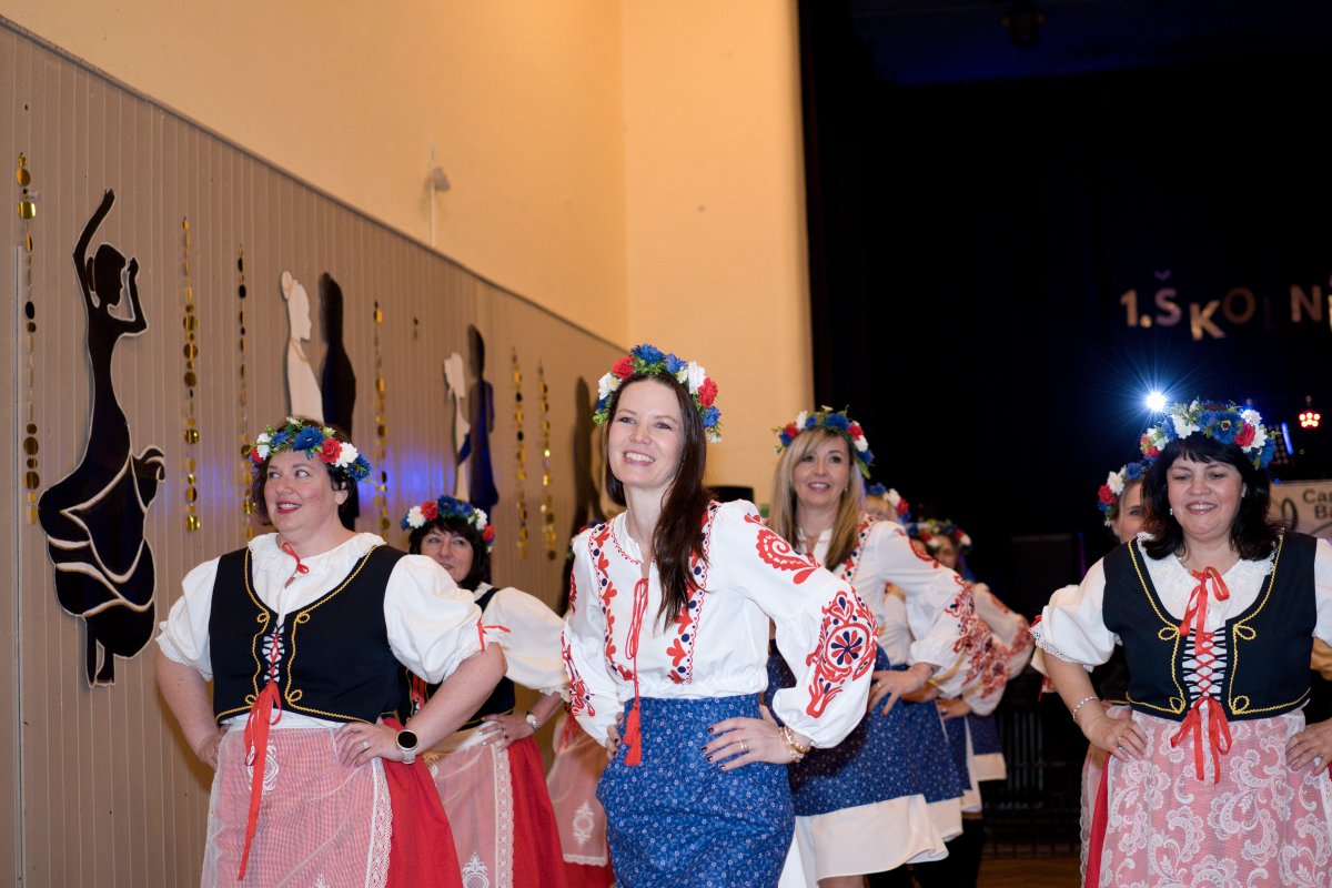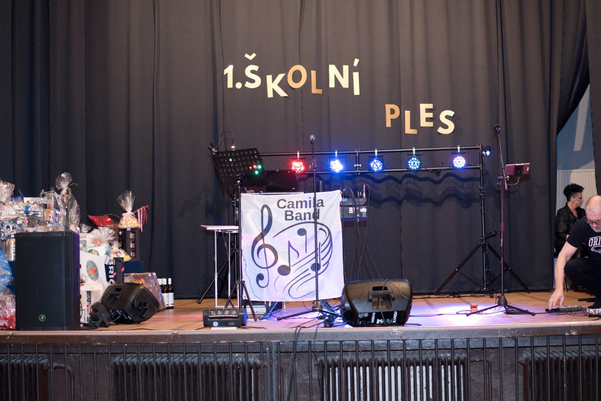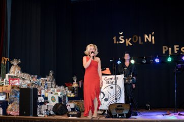 Vystoupení děvčat na fotbalovém plese v sále Sladovna. Děkujeme za reprezentaci naší školy!