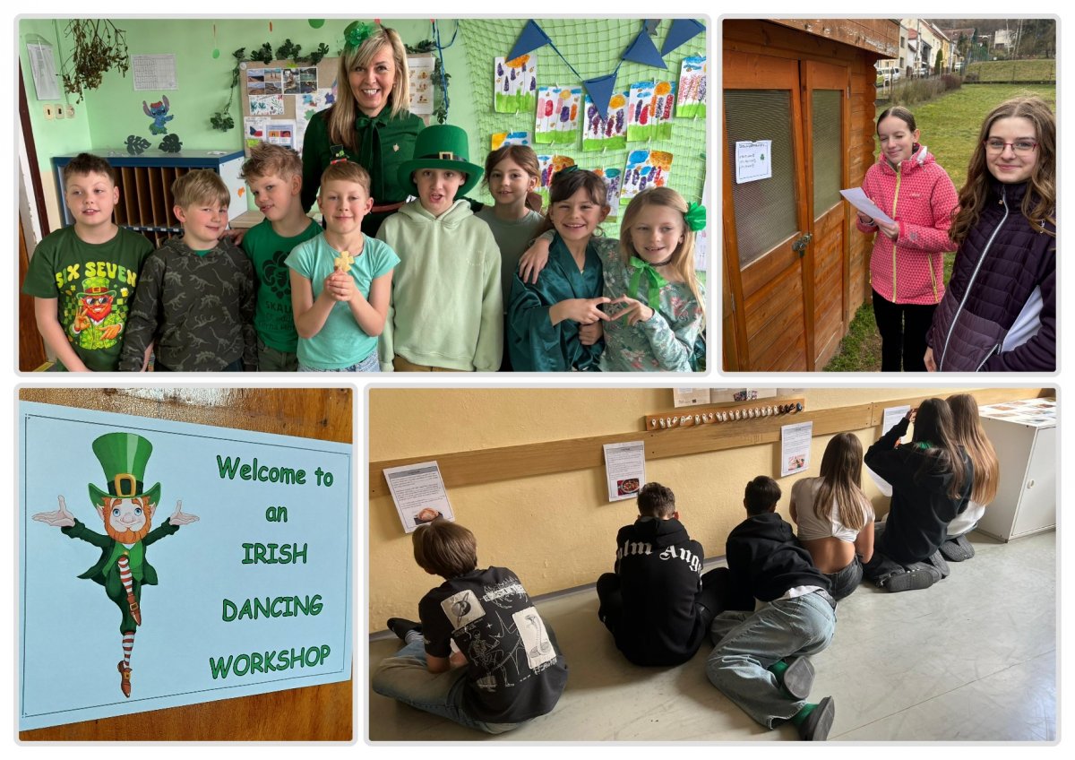 Na 17. březen připadá největší irský svátek - Den svatého Patrika. I v naší škole se to zazelenalo a sedmáci a osmáci si užili projektový den plný irské kultury - zeměpisem a dějepisem počínaje, přes jídlo, až po praktický nácvik irského tance.