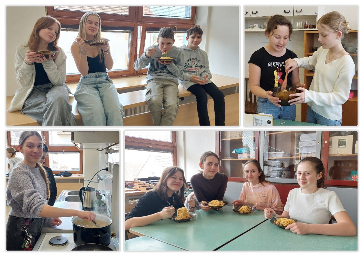 Už víme, co je to studená kuchyně, jaké jsou její výhody a co do ní patří. Navázali jsme praktickou hodinou, v níž jsme připravili celkem 6 druhů pomazánek. Každá z nich si našla svého fanouška.