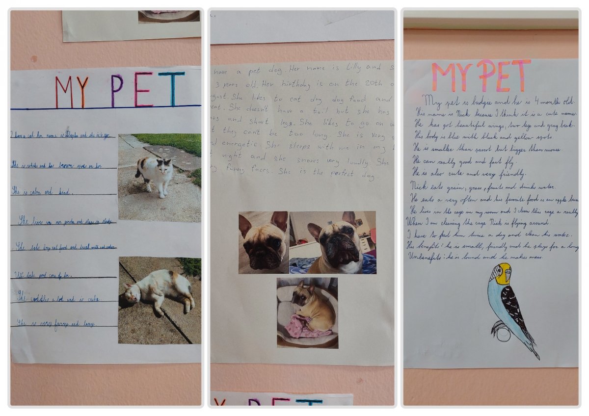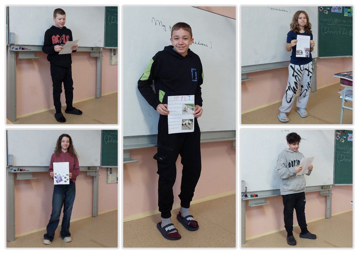 Výstupem 3. lekce byl text o našem domácím mazlíčkovi. Prezentovali jsme o andulkách, morčatech, křečcích, psech, kočkách i gekonech. Všichni jsme se shodli na jednom - své mazlíčky milujeme a moc dobře chápeme, že starat se o ně, je nedílnou součástí tohoto vztahu.