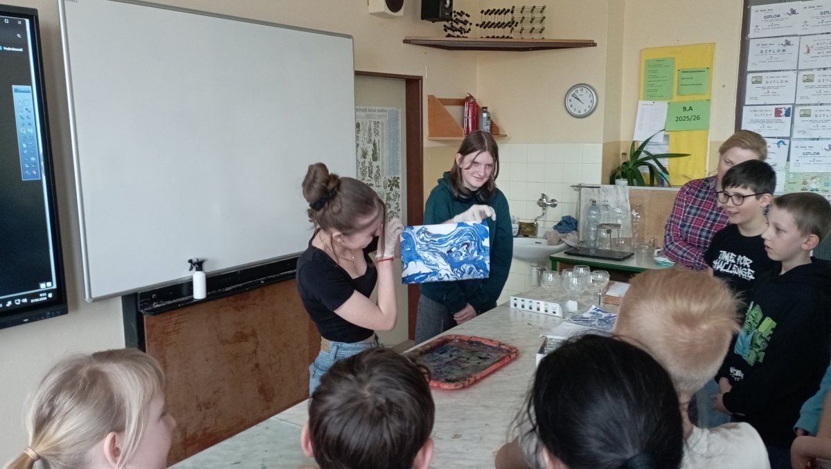Koncem března jsme se jako žáci osmých tříd zúčastnili tradičního projektu Voda s paní učitelkou Krajíčkovou a Jenderkovou. První den jsme hráli hry a shlédli jsme dva filmy o vodě. Potom jsme se rozdělili do skupin a vytvářeli jsme myšlenkové mapy na naše témata. V úterý jsme pracovali na prezentacích. Ve středu jsme dělali pokusy. Měřili jsme ph, zkoumali jsme led a připravovali jsme si vlastní pokusy, které budeme na závěr týdne předvádět. Ve čtvrtek jsme měli ekologický den. Říkali jsme si, jak to v životě chodí s vodou a jak ji gramotně využívat. Poslední den jsme prezentovali svoje projekty. Žáci čtvrtých tříd nás pozorně poslouchali a byli hodní. Na závěr si pro nás paní učitelka připravila překvapení, a to zmrzlinu, kterou jsme sami vyráběli. Projekt se nám líbil, zjistili jsme nové informace o vodě, a dokonce jsme i ochutnali různé druhy vod. Chceme poděkovat paní učitelce Krajíčkové a Jenderkové za úžasný týden.
