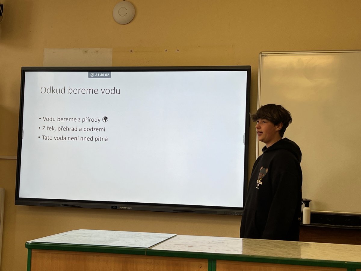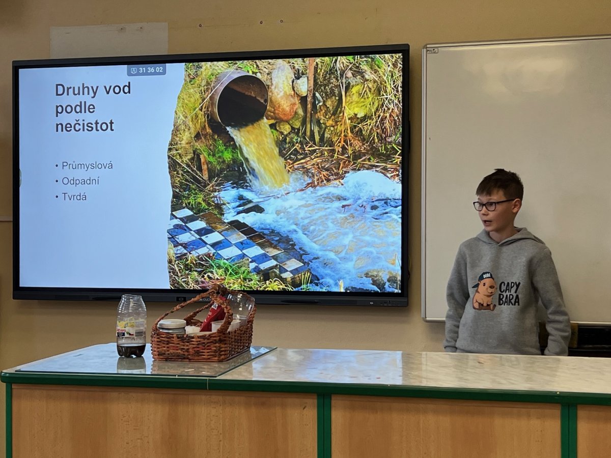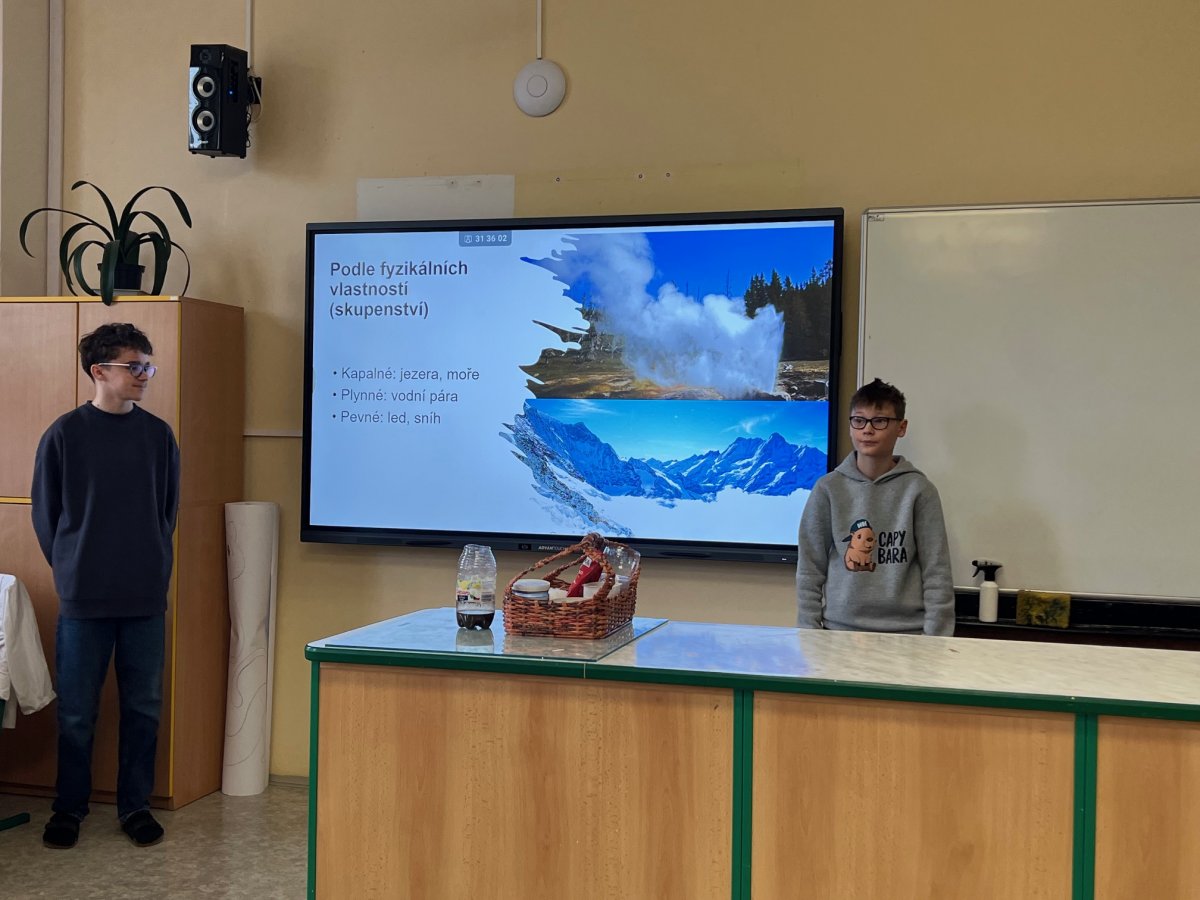 Na Základní škole Černá Hora se už 16 let koná projekt Voda. Pořádá ho osmá třída s paní učitelkou Krajíčkovou. Letos jsme byli na řadě my. V pátek jsme začali dole v šatnách, vybírali jsme si témata a dělali myšlenkovou mapu. V pondělí jsme strávili celý den v počítačové učebně a dělali jsme prezentace na svá vybraná témata, např.: Voda a organismy, Sport a umění, Využití vody a další. V úterý jsme dělali pokusy, nejvíce se nám líbilo zkoumání ph. U některých pokusů jsme museli vymyslet řešení, např. jak ponořit kostku cukru do vody bez toho, aniž by se namočila. Ve středu jsme měli ekologii s paní učitelkou Jenderkovou. Povídali jsme si o tom, jak šetřit vodou a kde se vůbec voda bere. Ve čtvrtek přišel Den D. Přednášeli jsme svoje prezentace žákům čtvrtého ročníku. Byly to velké stresy, ale všichni jsme to zvládli a za odměnu jsme si udělali domácí zmrzlinu. Týden byl super.
