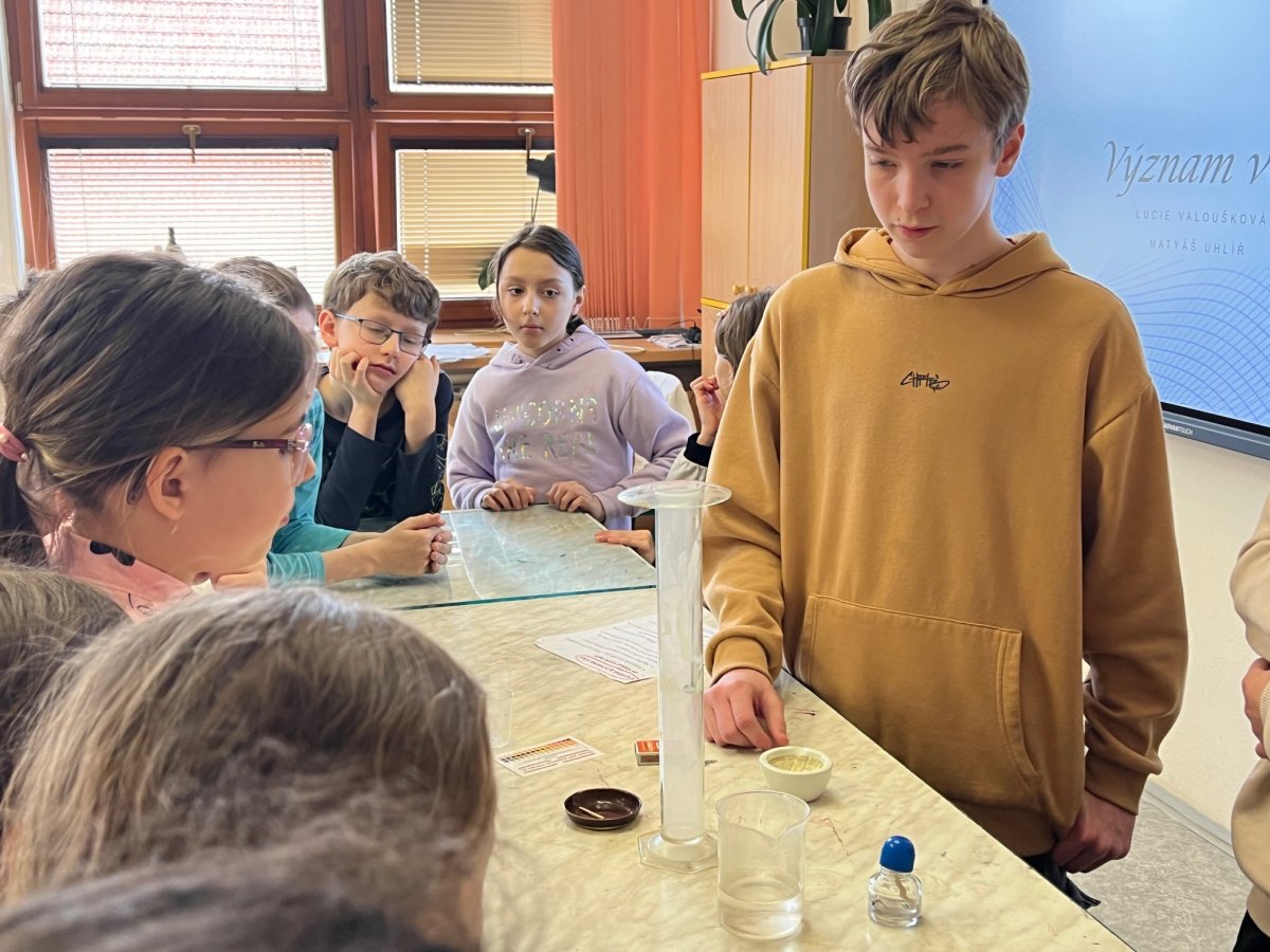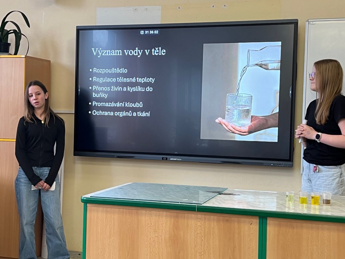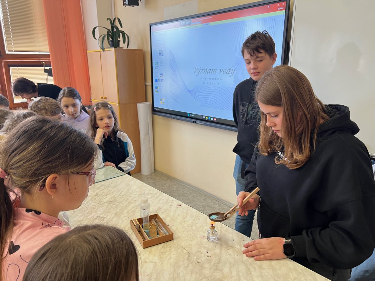 Na Základní škole Černá Hora se už 16 let koná projekt Voda. Pořádá ho osmá třída s paní učitelkou Krajíčkovou. Letos jsme byli na řadě my. V pátek jsme začali dole v šatnách, vybírali jsme si témata a dělali myšlenkovou mapu. V pondělí jsme strávili celý den v počítačové učebně a dělali jsme prezentace na svá vybraná témata, např.: Voda a organismy, Sport a umění, Využití vody a další. V úterý jsme dělali pokusy, nejvíce se nám líbilo zkoumání ph. U některých pokusů jsme museli vymyslet řešení, např. jak ponořit kostku cukru do vody bez toho, aniž by se namočila. Ve středu jsme měli ekologii s paní učitelkou Jenderkovou. Povídali jsme si o tom, jak šetřit vodou a kde se vůbec voda bere. Ve čtvrtek přišel Den D. Přednášeli jsme svoje prezentace žákům čtvrtého ročníku. Byly to velké stresy, ale všichni jsme to zvládli a za odměnu jsme si udělali domácí zmrzlinu. Týden byl super.