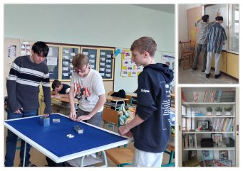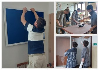 Všichni žáci volají po odpočinkové zóně, ne všichni se shodnou na tom, jak by měla vypadat. I přesto jsme přiložili ruku k dílu. Natřeli jsme vitríny ve 2. patře a zrenovovali přilehlou nástěnku. Máme z toho dobrý pocit.
