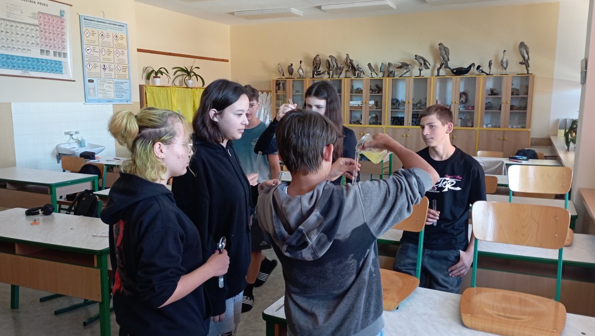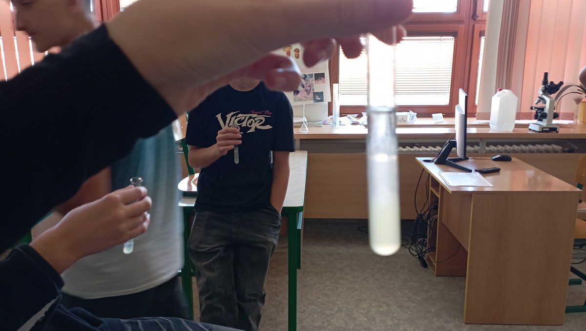 V dnešní hodině přírodopisu jsme se v rámci učiva o genetice pokusili získat svoji DNA z buněk sliznice úst. Druhým úkolem bylo získání rostlinné DNA z buněk rajčete. Práce se nám perfektně povedla.