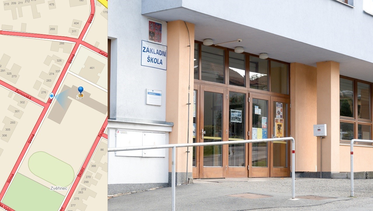Vchod do školy je z ulice Strmé (viz obrázek):