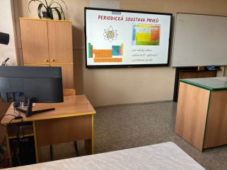 Na naší škole pracují žáci v hodinách přírodopisu a chemie ve speciální učebně, která je vybavena interaktivní tabulí a dalšími pomůckami pro pokusy a pozorování.