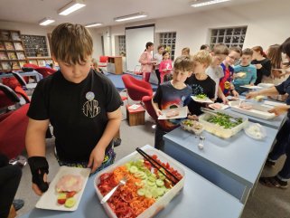 Ocenit pracovníky školních jídelen - to bylo cílem Dne kuchařek a kuchařů. Máme velké štěstí, že naše školní jídelna nejen respektuje spotřební koš, který je kontrolován Českou školní inspekcí a Krajskou hygienickou stanicí, ale dokonce připravuje jídla velice chutná, zdravá a občas nevšední. Taky každý rok vaří na přání. A my jim moc děkujeme za důležitou, ne úplně samozřejmou a někdy nevděčnou práci.