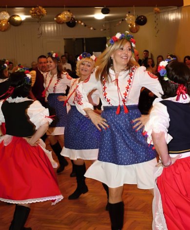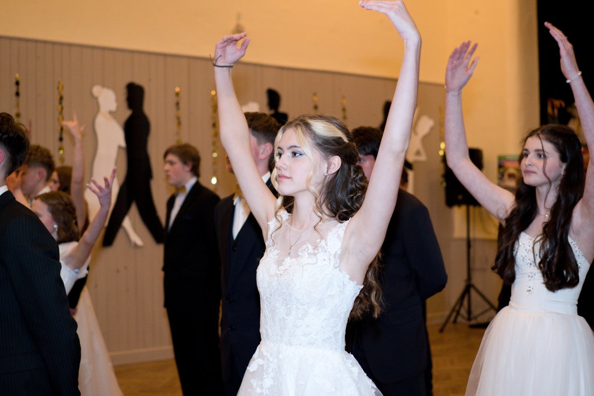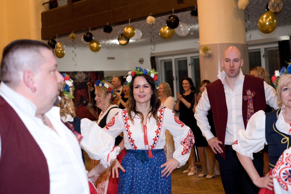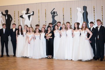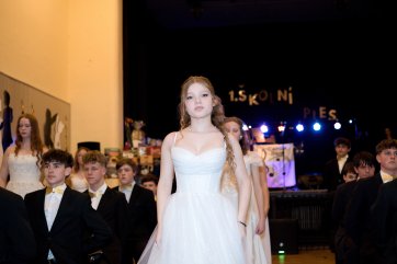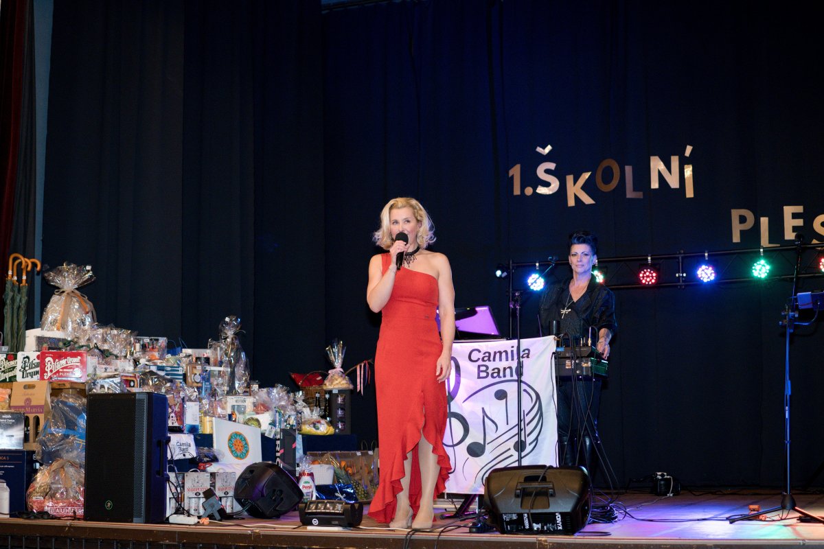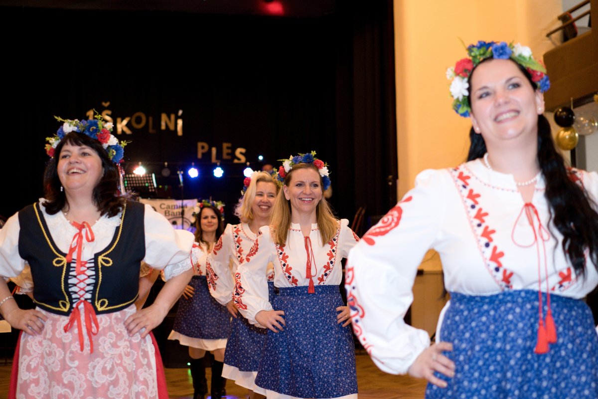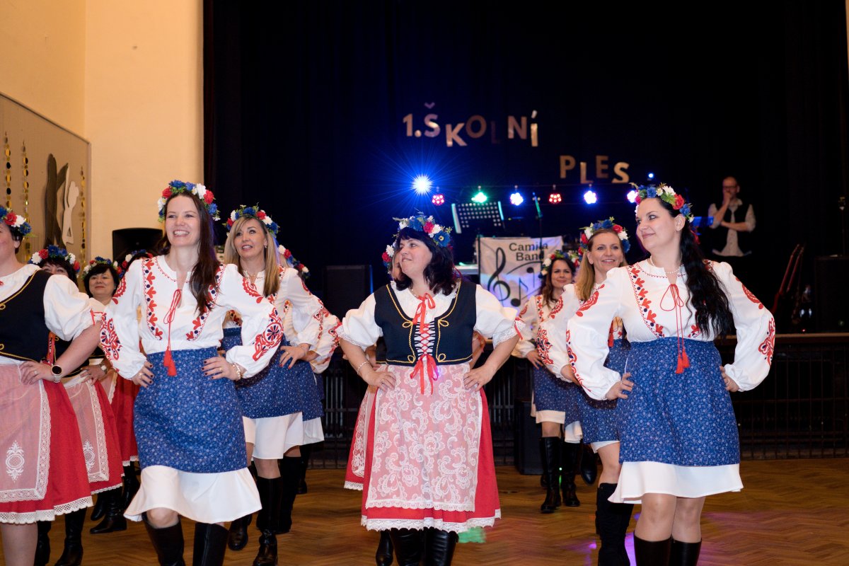Vystoupení děvčat na fotbalovém plese v sále Sladovna. Děkujeme za reprezentaci naší školy!
