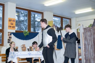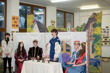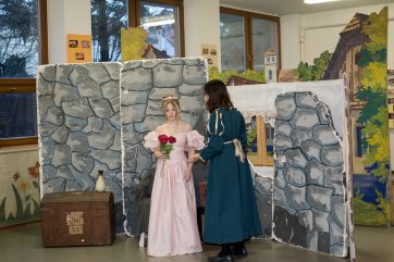 Pasování 1.A - Divadelní představení 9.A Princezna ze mlejna