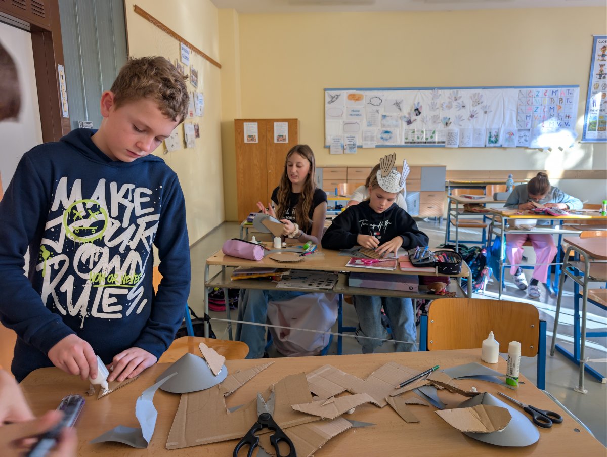 V hodině dějepisu jsme vyráběli galské (keltské) helmy. Podobné helmy nosili i slavní galští bojovníci Asterix a Obelix.