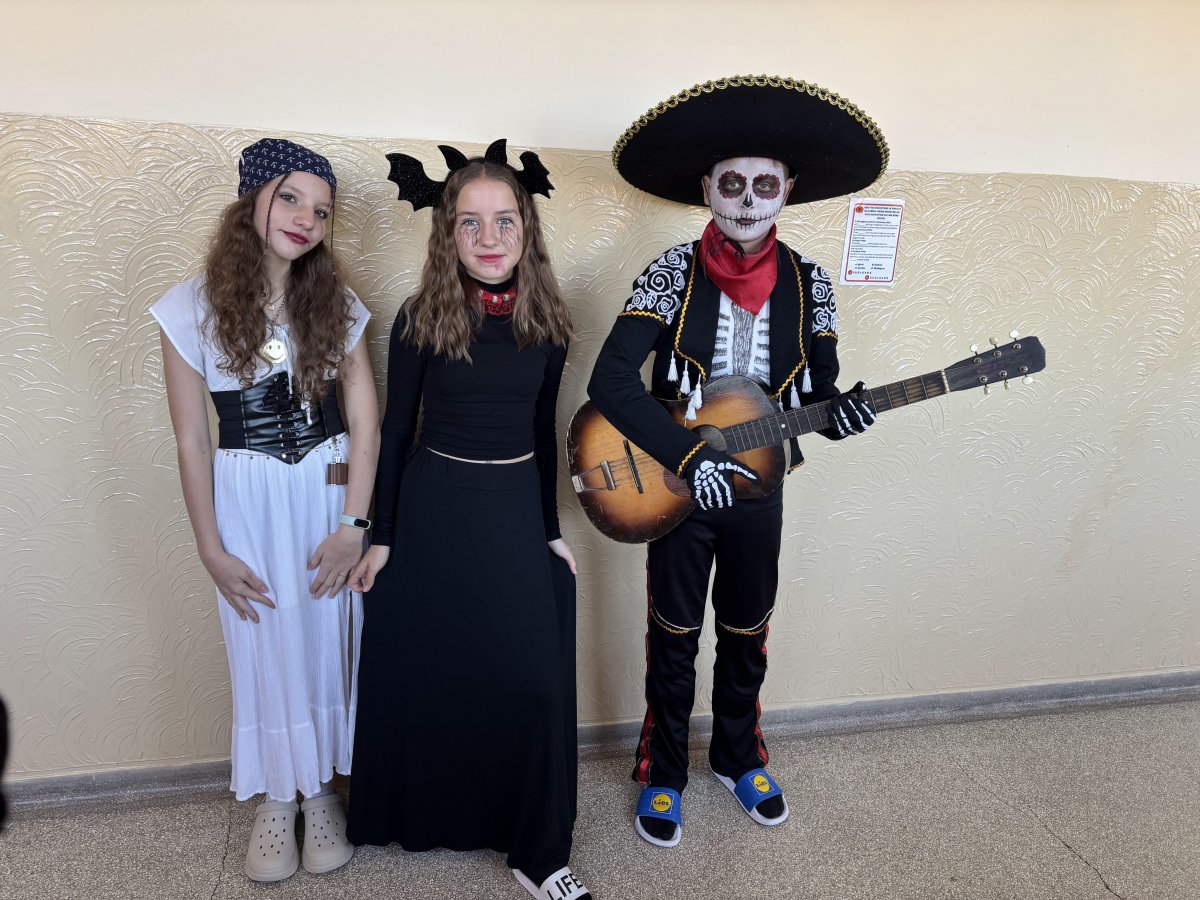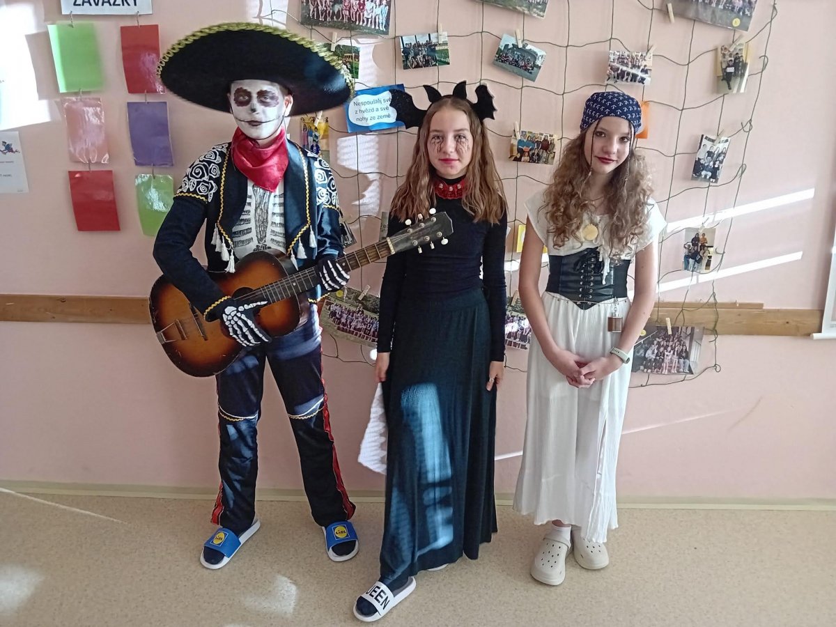 Jednou z typických halloweenských aktivit v anglicky mluvících zemích je "bobbing for apples". Žáci 7.A nejsou v této disciplíně nováčky. O tom svědčí i naprosto neuvěřitelná rychlost, s jakou někteří jablka z mísy vylovili.