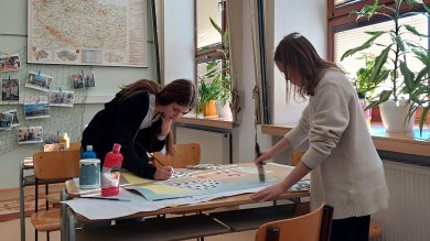 Vyrábíme si kulisy a rekvizity k dramatickému představení Kouzla králů. Hodně se u toho učíme.