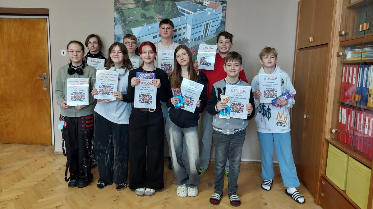 Školního kola Olympiády v anglickém jazyce se účastnilo celkem 27 žáků 6. - 9. tříd. Šest z nich bylo z 9.B. Nejlépe se vedlo Jirkovi, který nakonec obsadil 3. příčku a zároveň mohl mít radost z úplně nejlepšího výsledku v testu zaměřeném na poslech a práci s textem. Bety, Kubovi, Danovi, Štěpovi i Matymu děkujeme za reprezentaci třídy a Jirkovi blahopřejeme.