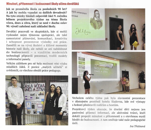 Minulost, přítomnost, budoucnost školy očima deváťáků